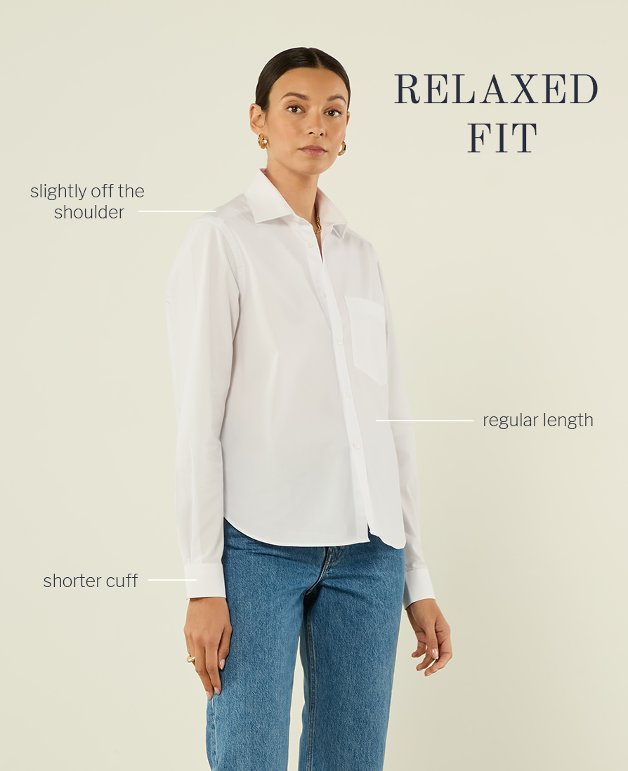 Not too short or too long with a curved hem, the shirt is easy to tuck.