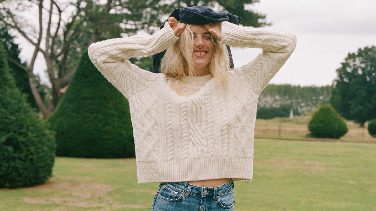 Cut to an oversized silhouette that’s a bit boxy in the body with a slightly dropped shoulder, the old-school cables are specifically placed to cast a flattering line.