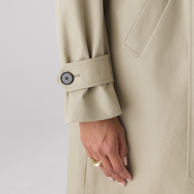 Chatsworth Coat: Cotton, Dark Stone. The art of effortless. A trench coat – classic but accentuated by contemporary elements. A car coat - simple with heritage additions. A cotton lining, elegant masculine cut with a belt that allows the perfect cinch to the waist.