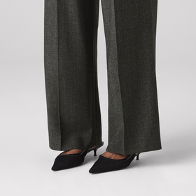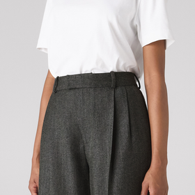 Rampling Trouser: Wool, Grey Herringbone. Meet the timeless wardrobe staple for your tailoring rotation. In chic timeless grey, the intricate herringbone weave adds depth and texture to those woollen trousers. Pair them with a poplin shirt and blazer for the office, a plain white tee for the school run and an oversized oxford shirt for weekend dates.