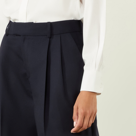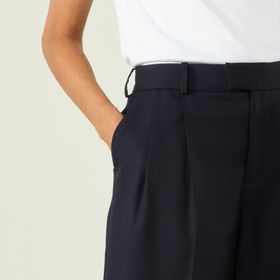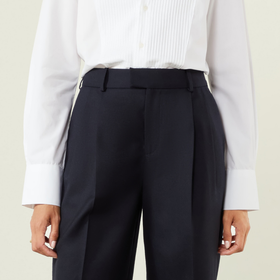 The Rampling Trouser: Wool, Navy Blue in 100% Wool. Meet the timeless wardrobe staple for your tailoring rotation. In a chic, deep navy, this trouser is designed to fit all the women you are in one day, and suit your style through the seasons. Pair with a poplin shirt and blazer for the office, a plain white tee for the school run and an oversized oxford shirt for weekend dates.